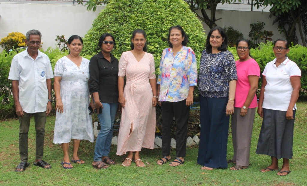 Standing Left to Right: Mr. Karunaratne Sigera, Office Support, Ms. Namalee Vithanage, Asst. Support Services, Ms. Dilani Kamalenthirn, Overall Coordinator, Ms. Saritha Fernando, Sr. Executive Accounts & Customer Service, Ms. Devini Tissaaratchy, CEO, Ms. Gayathri Gajamange, Sr. Manager Admin & Finance, Ms. Mercy Arulanandam, Coordinator, Ms. Mallika Horana Pathiranage, Janitorial Services.